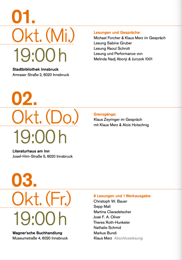 HERBSTW:ORTE – 3 Tage Klaus Merz in Innsbruck: 1.-3. Oktober 2025